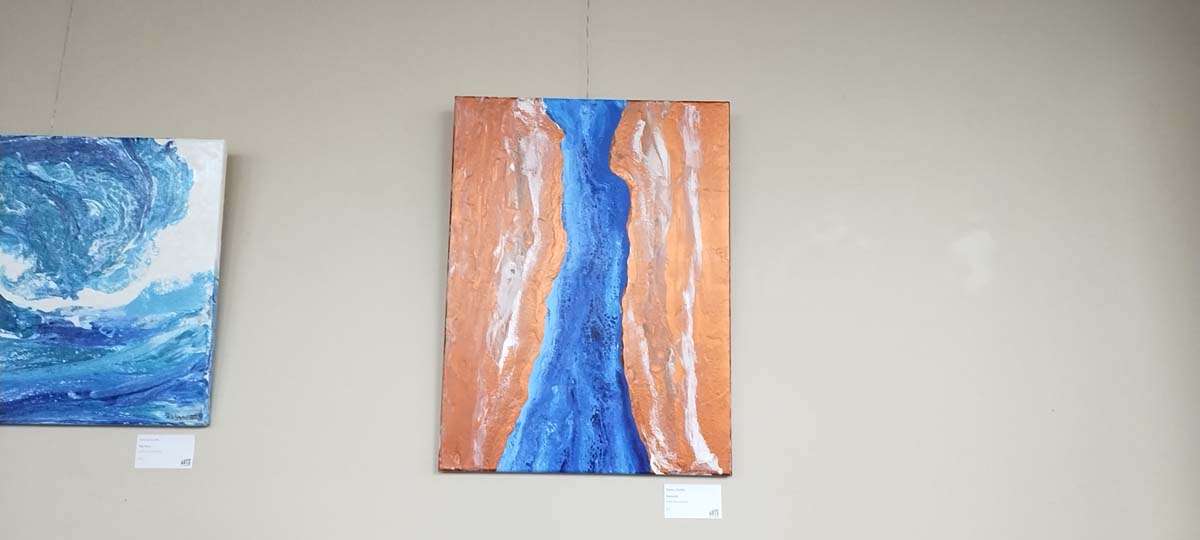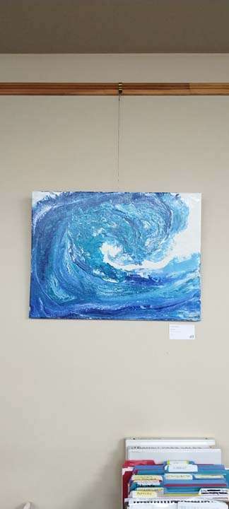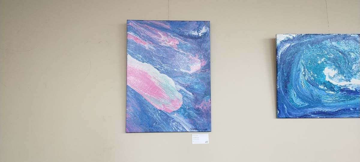 These pour paintings are one-of-a-kind paintings created by using a variety of techniques such as tilting the canvas back and forth, blowing paint with straws, and swiping with spatulas, wet paper towels, and other tools. The goal is to mix colors of paint on a “pillow” of color (white usually but could be any color) and achieve as many “cell-like images” in the painting as possible. The beauty of the process is that if I do not like the results, I let it dry and reuse the canvas.