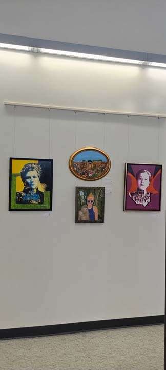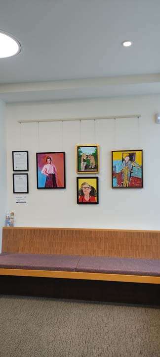 For this exhibit, I’m focusing on portraits of women I’ve known, admired and inspired me. This show is only a small sample, as I plan to paint many more. My medium is acrylic and my method is to use a projector for initial sketch, then filling the canvas with bold colors and style.