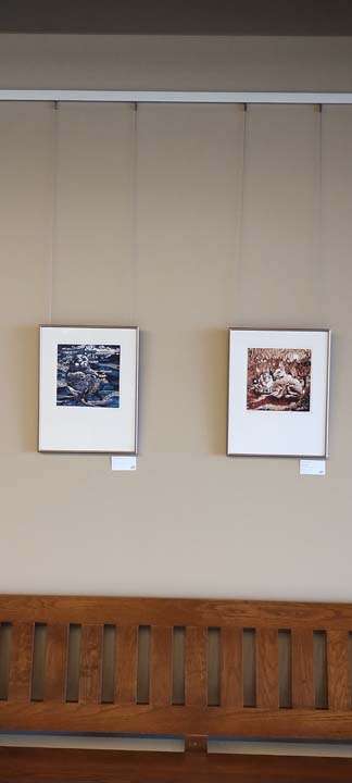 These linoleum reduction block prints are hand-inked and pulled with layers of color applied one at a time. I carve the block between each layer of color applied light to dark with each subsequent layer. Black is the last layer. My inspiration for these animal images comes from my sketches done on location, and worked up in my studio before I transfer them to my block. I work in several media but my subjects are always observed and sketched first, then I design the composition.