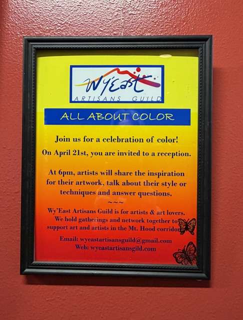 This body of work is an invitation to enjoy color for its beauty, energy and expressive power. Color shapes the feeling, defines the space and tells the story. Wy’East Artisans Guild is for artists & art lovers. We hold gatherings and network together to support art and artists in the Mt. Hood corridor.