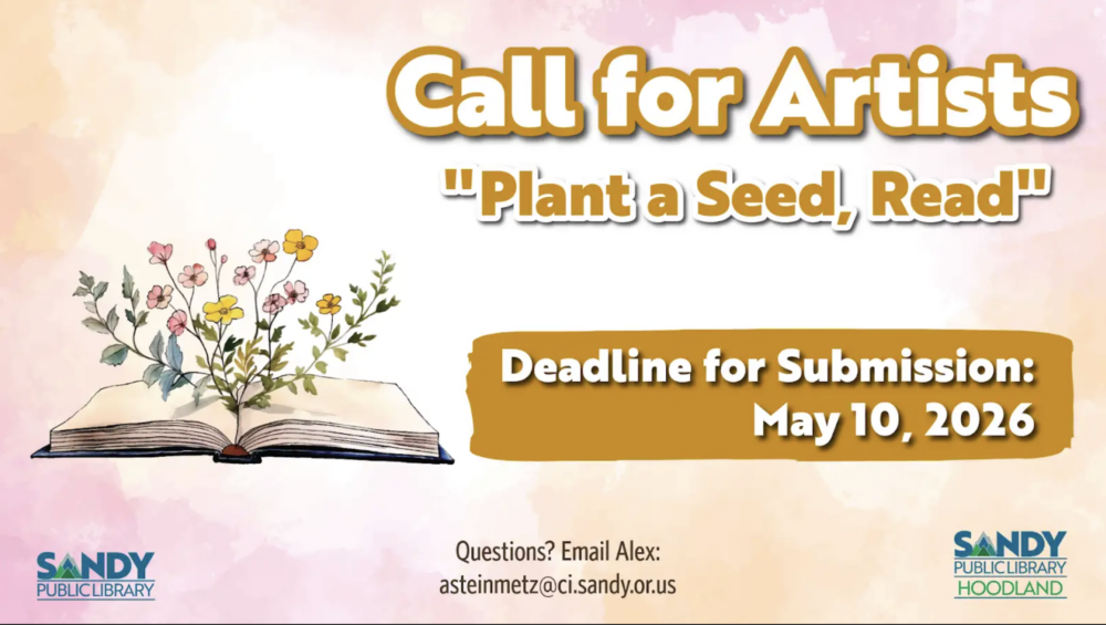 CategoriesArtist opportunity Calls to Artists OpportunitiesWe invite artists from Clackamas County to explore the idea of the phrase “Plant a Seed, Read” through their artistic lens. Based on the Summer Reading theme for 2026, “Plant […]