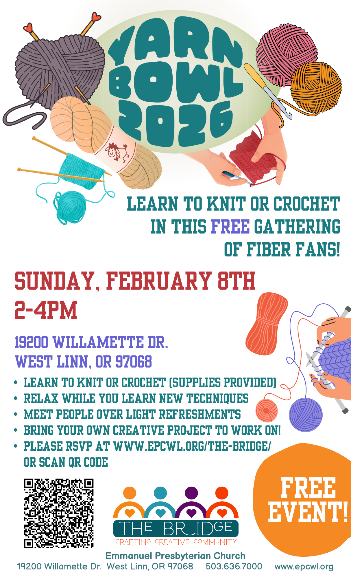 Calling all Artist and Artisans: If you enjoy creating art but hate doing it by your lonesome, we have a group for you. Come join us Thursday mornings, 9:00 a.m. - Noon, at St. Paul’s Episcopal Church, 822 Washington St., Oregon City. Bring your own easel, paints, yarn, macrame, beads, paper, or basket weaving (or […]