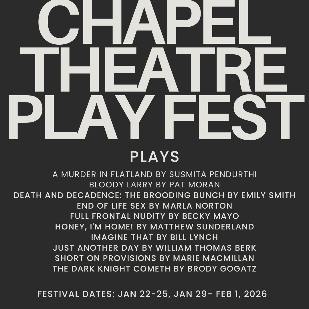 This play festival showcases writers and their short plays by matching them up with local directors and actors to carry out their work. Playwrights submit their short plays to be considered while local directors and actors audition to take part in the festival. Chapel Theatre Co connects the plays with actors and directors and allows […]