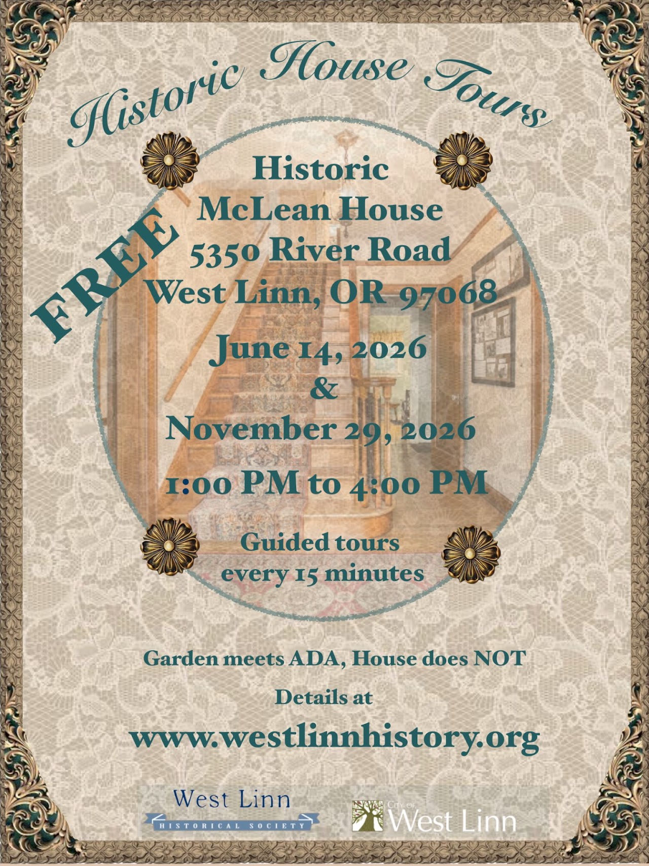Jun 14 Historic House Tours 1:00 pm - 4:00 pm The McLean House 5350 River Street, West Linn Event Details Get Directions