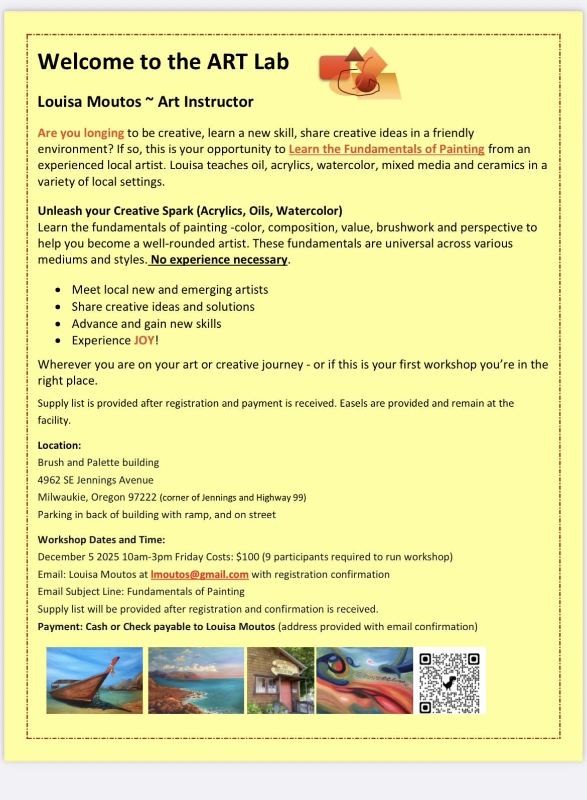 Welcome to the ART Lab Louisa Moutos ~ Art Instructor Are you longing to be creative, learn new skills, share creative ideas in a friendly environment? If so, this is your opportunity to Intuitive Painting from an experienced local artist. Louisa teaches oil, acrylics, watercolor, mixed media, intuitive painting, and ceramics in a variety of […]
